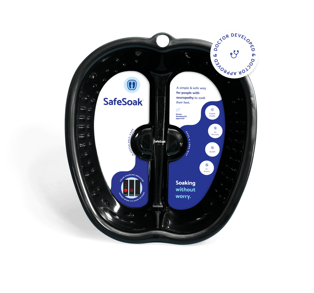 SafeSoak is a one-of-a-kind foot bath that allows those with nerve damage, neuropathy, or diabetes to safely soak their feet using a simple color-changing indicator.